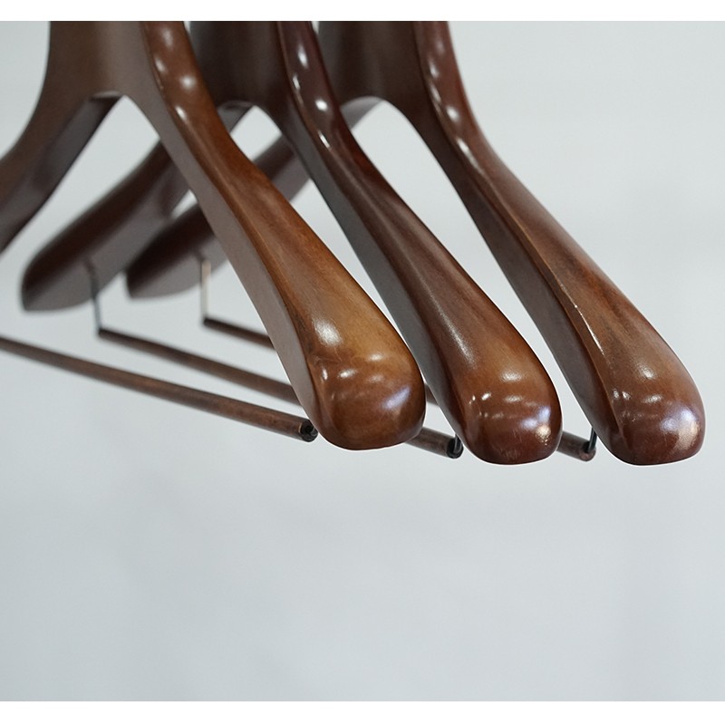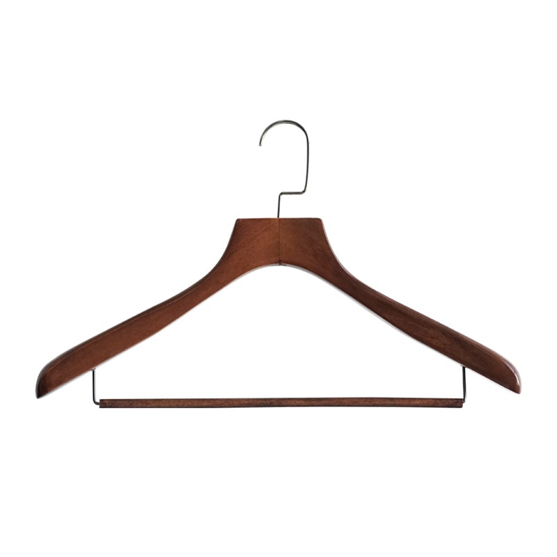 Crafted from high-quality solid wood, the wide shoulder curved design effectively protects suit shoulders from deformation. Paired with an adjustable pant bar, one hanger can neatly store a complete suit. The smooth surface is free of burrs, and the metal hook is rust-resistant and durable, making it an ideal choice for high-end clothing stores and home wardrobes.